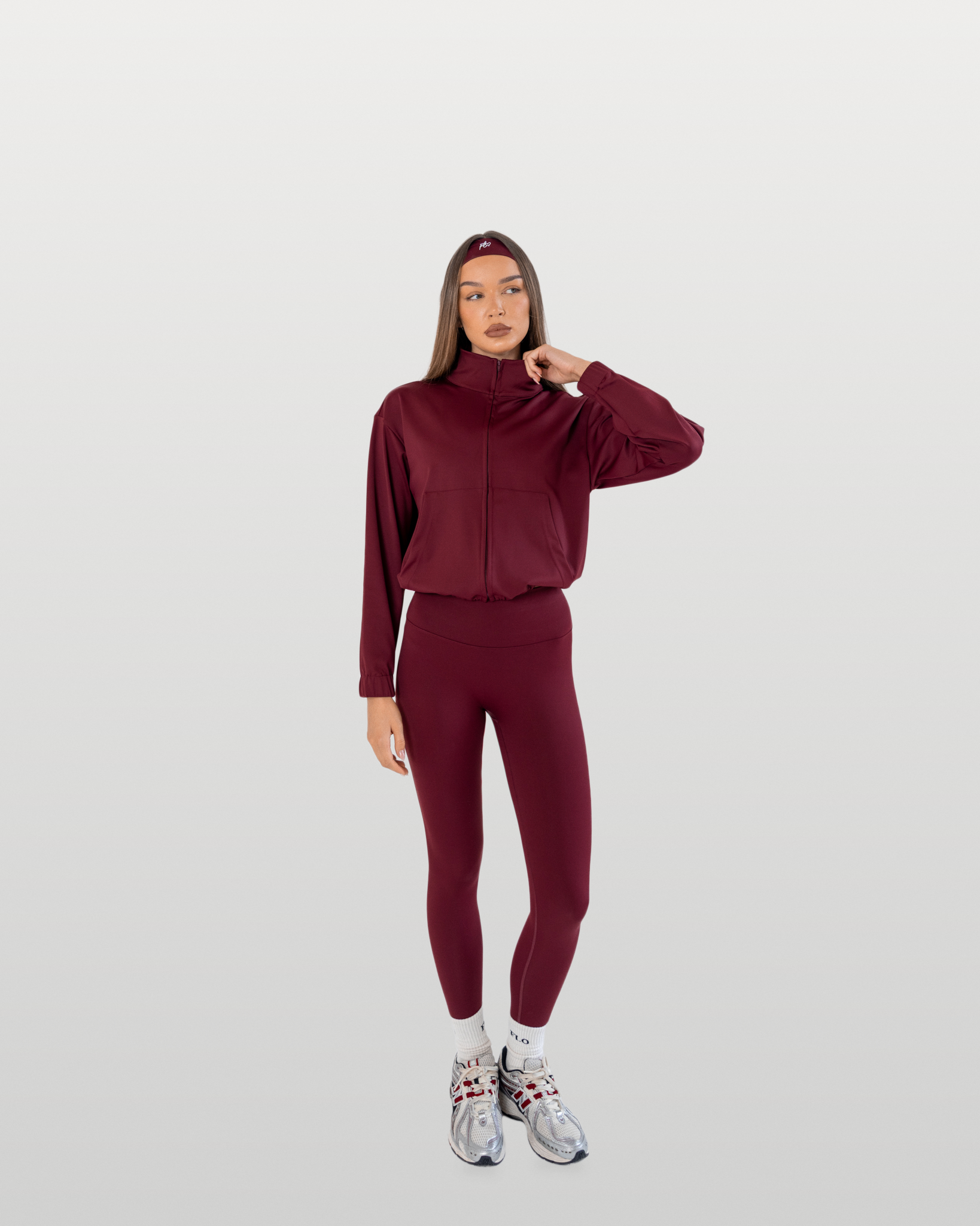 Essential full-zip funnel jacket - dark cherry