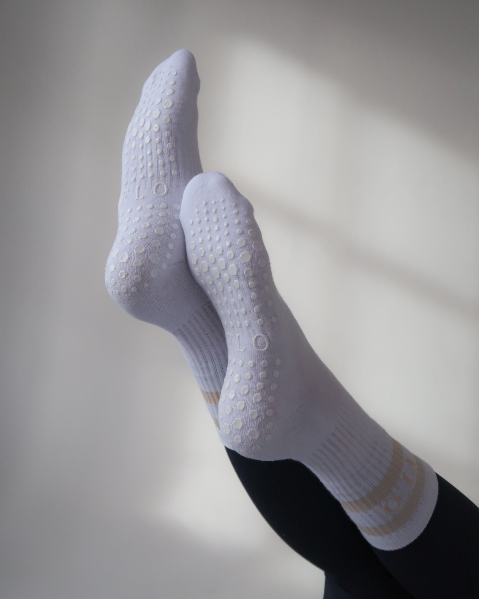 Calling all Pilates girls, we now have our signature ankle socks in a Pilates version. Made with a soft and cushioned cotton blend and a grip sole design, perfect for your next Pilates workout.